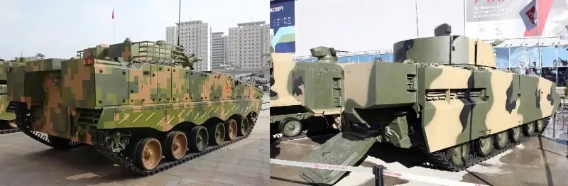 Интересен тут пример китайцев. Они в 1990-х купили ряд отечественных технологий, связанных с БМП-3. Где-то пишут, что куплена была лицензия на производство БМП целиком, где-то пишут, что интересовала их лишь ходовая и оружейные системы. Как бы то ни было, машина, в основе которой лежали технические решения БМП-3, у китайцев появилась. Вот только похожа эта машина скорее на БМП-3М «Драгун», чем, собственно, на БМП-3. Речь про ZBD-04. Китайцы полностью перекомпоновали БМП, сделав сзади полноценное десантное отделение.