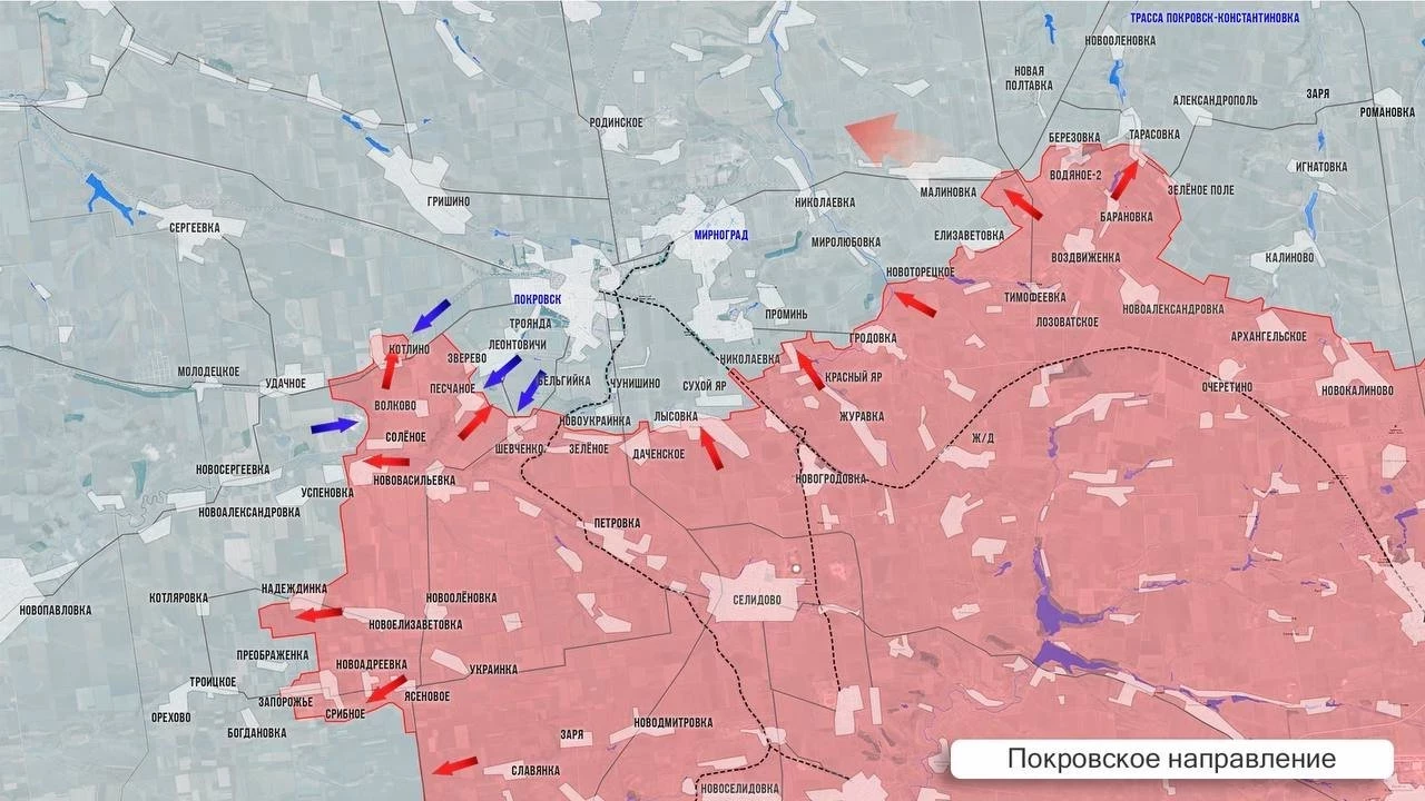 Вооружённые силы Российской Федерации активизировали продвижение на Константиновском участке фронта (между Покровском и Торецком, к юго-западу от последнего). После освобождения Архангельского, Новобахмутовки и Керамика на этом направлении долгое время сохранялось относительное затишье. Об этом сообщает Telegram-канал "Военкоры Русской Весны".