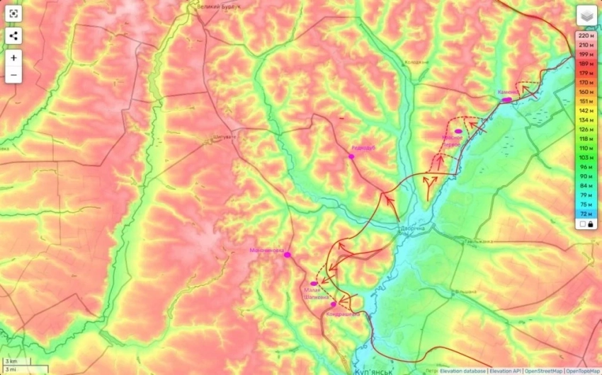Таким образом мы продолжаем зачищать от противника западный берег реки Оскол севернее Купянска и расширяем свой плацдарм на его правом берегу.