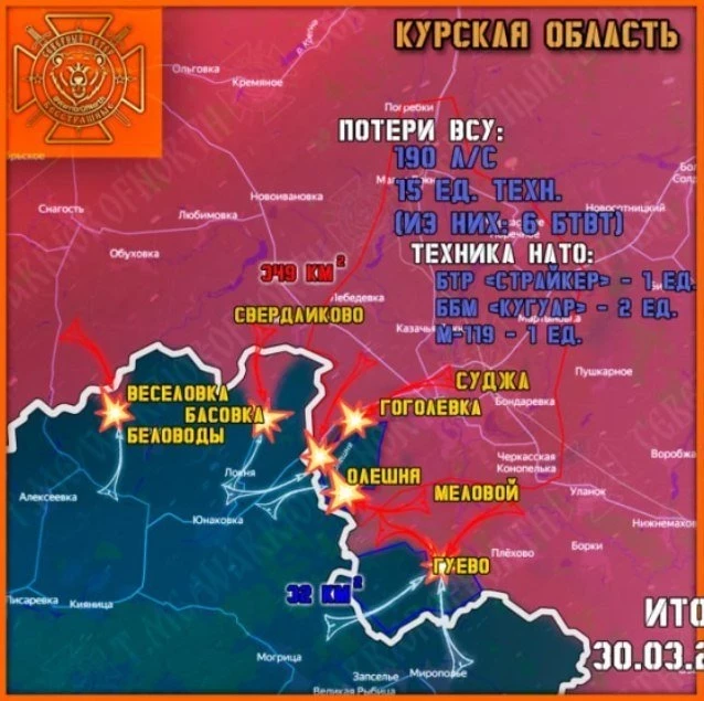 Карта боевых действий в Курской области. Данные на 31 марта
