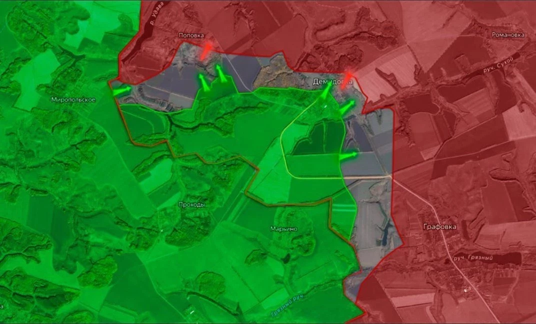 В Гуево накануне шло сражение за южные окраины, большая часть села и все ключевые точки уже под контролем наших сил. Также наши наступают на высоты перед хутором Горналь. Сообщают, что ВСУ отступают к Свято-Никольскому монастырю.