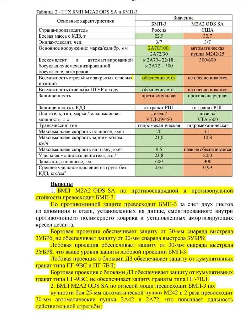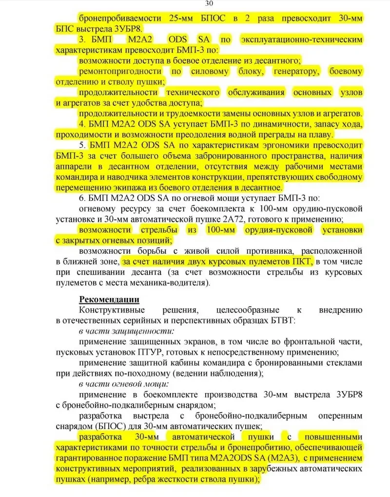 По итогам проведенных испытаний 38-й НИИИ БТ МО дает несколько рекомендаций, которые должны привести российскую БМП-3 к превосходству над американской машиной.
