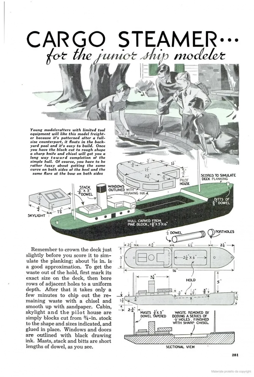 Модель корабля во все времена была очень заманчивым объектом для приложения творческих сил, как детей, так и взрослых. И вот «Популярная механика» поместила на своих страницах сразу две такие модели: одну попроще и другую посложнее.