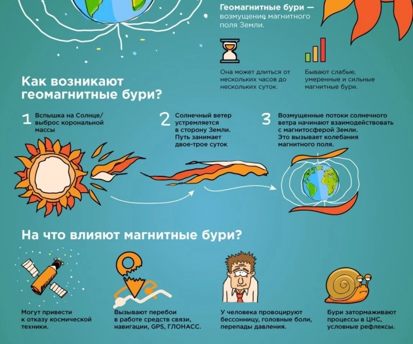 Как возникают геомагнитные бури и на что влияют (инфографика)