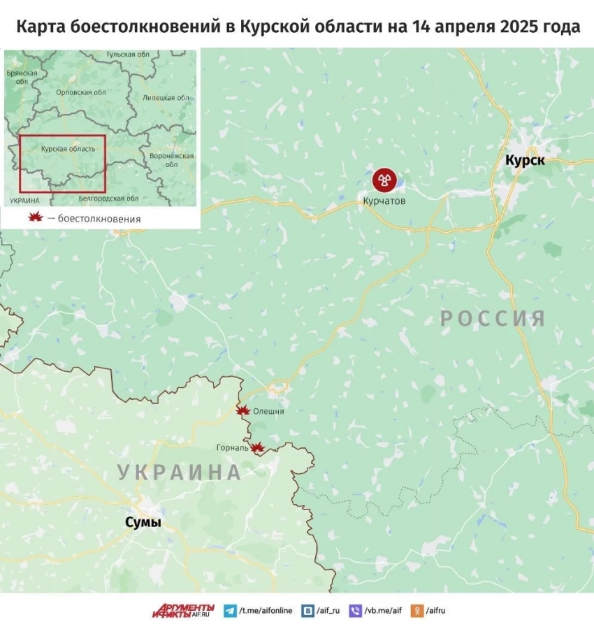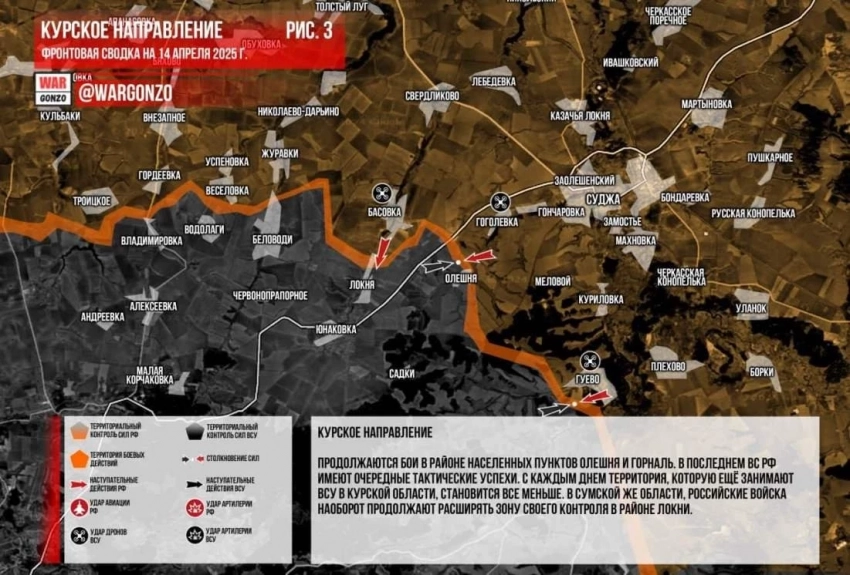Свежая карта боевых действий в Курской области. Данные на сегодняшний день, 14.04.2025