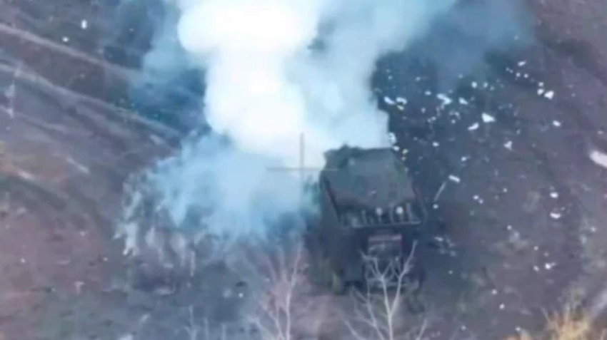 Позже удалось поразить и бронеавтомобиль «Козак», когда тот был на дорожном участке. Техника была ликвидирована точным попаданием беспилотника. В результате начавшегося пожара автомобиль полностью сгорел.
