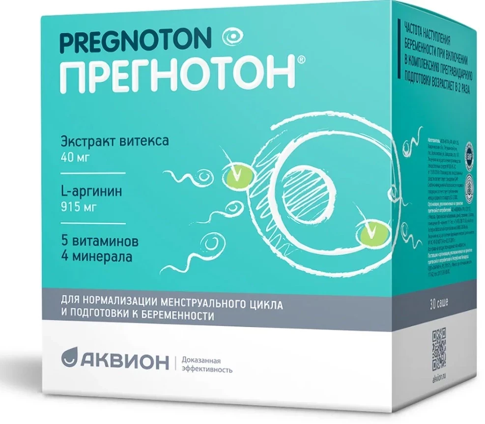 Прегнотон саше — не универсальный витаминный коктейль, а точечная формула, ориентированная на ключевые потребности женского организма в период подготовки к беременности и нормализации менструального цикла. Комплекс создан с учётом репродуктивной специфики: L-аргинин улучшает кровоснабжение органов малого таза, витекс регулирует гормональный фон, а продуманный набор витаминов группы B, C, E и микроэлементов помогает выровнять общее самочувствие. Продукт идеально вписывается в схему ЭКО-подготовки и может быть частью профилактического курса для женщин с нерегулярным циклом. Что ценно — состав без агрессивной химии, с мягким действием. Учитывая репутацию бренда Аквион и отсутствие побочных эффектов при соблюдении инструкции, Прегнотон — один из лучших представителей категории. Не панацея, но честно делает то, что заявлено.