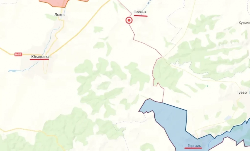 Пытаясь остановить российское продвижение, противник подтягивает свои резервы из Юнаковки к Олешне.