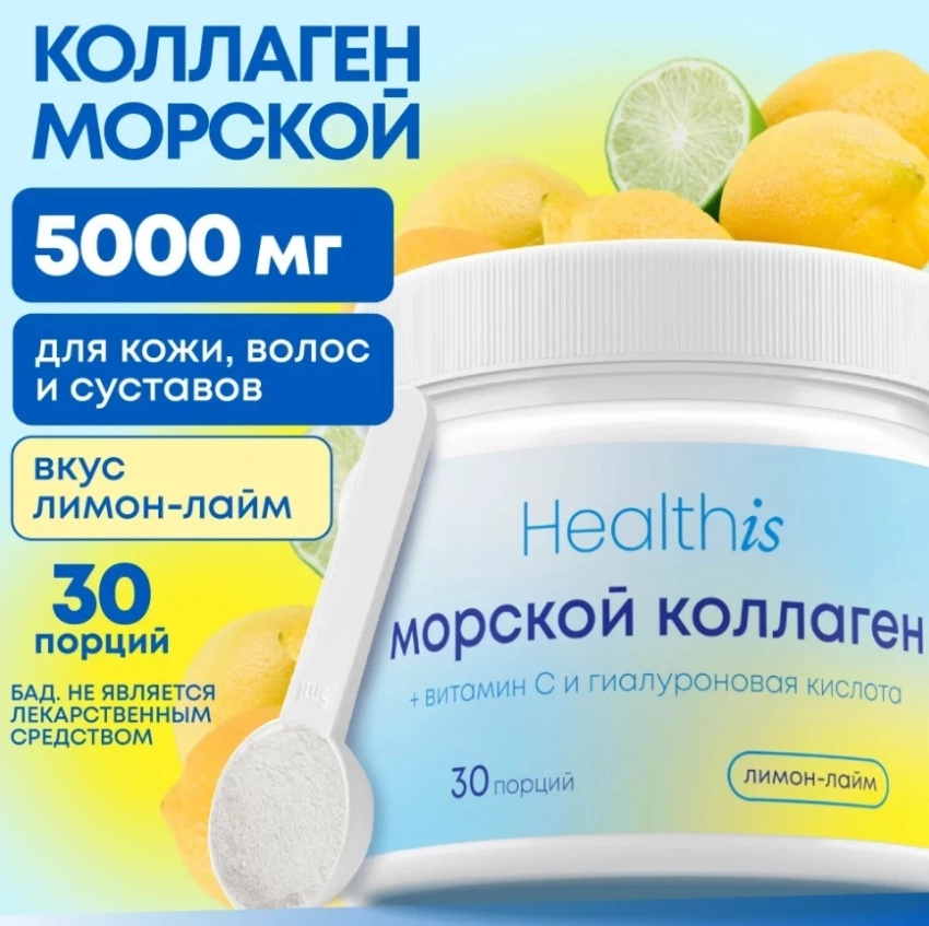 Морской коллаген в порошке от HealthIs — это настоящий топ бад коллаген для тех, кто хочет комплексно заботиться о себе. Благодаря высокой концентрации аминокислот, он работает сразу на несколько фронтов: укрепляет суставы и связки, делает кожу упругой и увлажнённой, а волосы и ногти — крепкими и здоровыми. Витамин С и гиалуроновая кислота усиливают эффект и повышают усвояемость. Приятный вкус, продуманный состав и сертифицированное качество делают этот БАД достойным местом в твоей системе self-care.