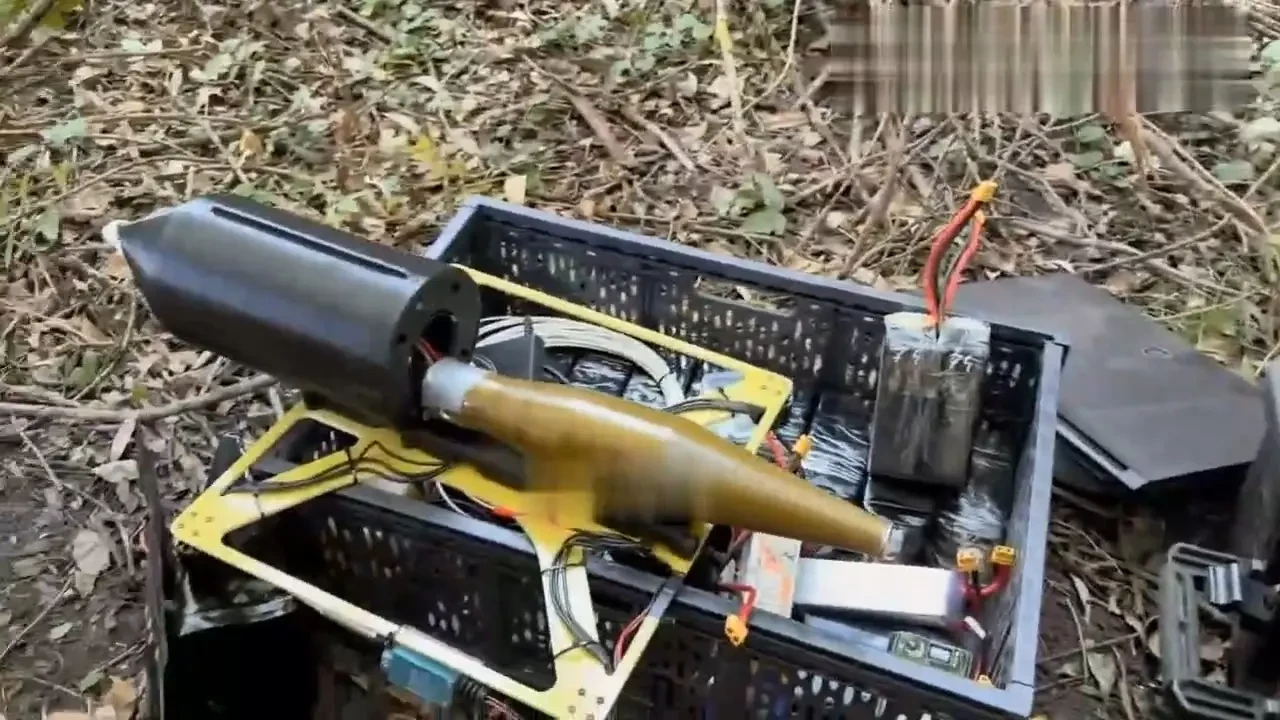 Украинский БПЛА с оптоволоконной связью. Под корпусом подвешена катушка с кабелем. Фото Interestingengineering.com