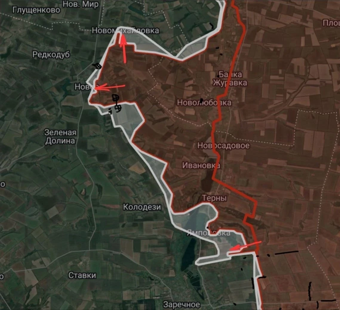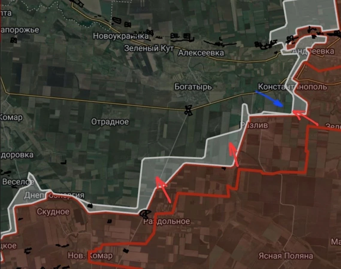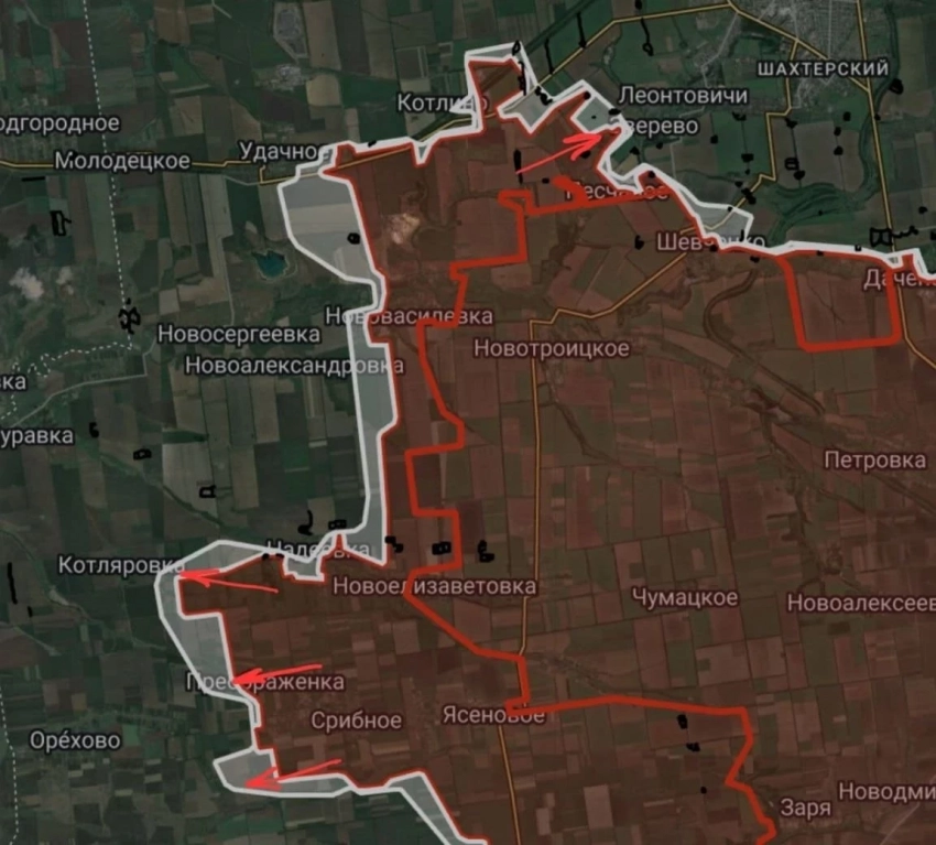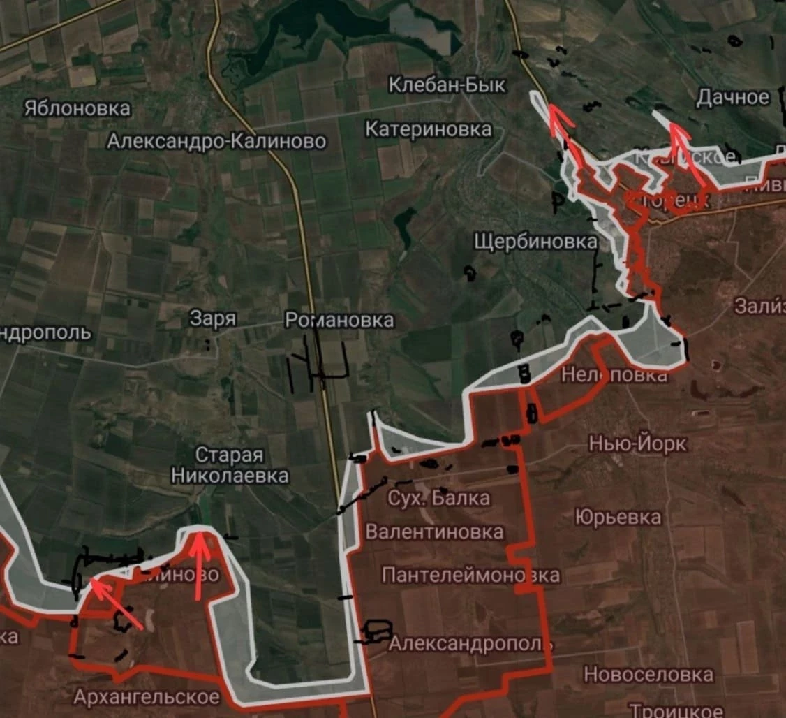 На Днепропетровском направлении севернее Андреевки ВС России продвигаются на участке шириной до 2.8 км на глубину до 1.15 км. Идут бои в направлении Котляровки и в Успеновке.