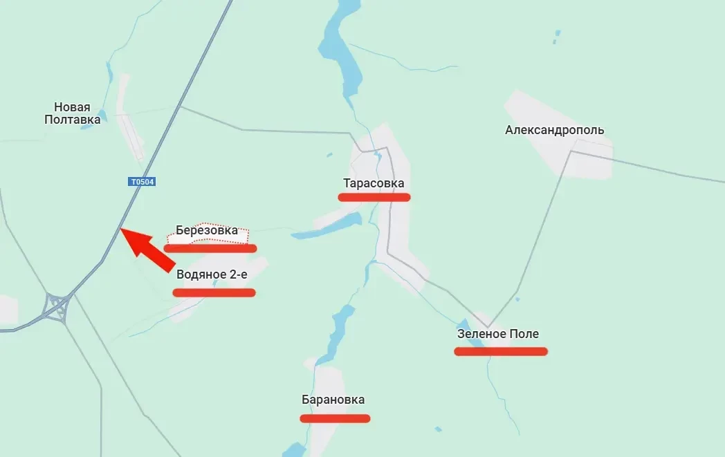 С освобождением Берёзовки под контроль Вооружённых сил России полностью перешёл и квадрат (скорее - ромб) Берёзовка - Барановка - Зелёное Поле –Тарасовка. И это позволяет нашим войскам значительно расширить участок контроля над упомянутой автодорогой (Т0504). Также это позволяет продвинуться к селу Новая Полтавка, находящемуся севернее автомобильного маршрута на Константиновку.