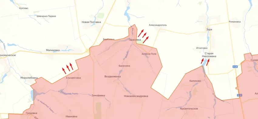 К востоку от Покровска ожесточённые бои идут в районах Елизаветовки, Тарасовки и Старой Николаевки. При этом, по данным вражеских мониторинговых ресурсов, особенно тяжёлая ситуация для ВСУ сложилась под Тарасовкой, где российские войска почти полностью взяли под контроль Водяное Второе и Зелёное Поле.