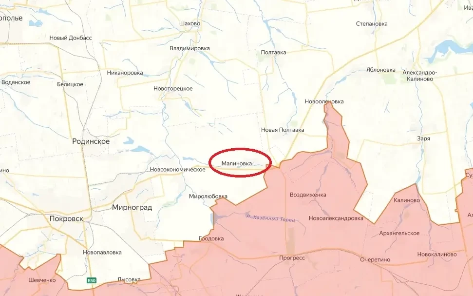 Штурмовые подразделения российской армии пересекли трассу Покровск — Константиновка и рывком зашли в село Малиновка, расположенное к северо-востоку от Покровска (Красноармейска). В настоящее время наши бойцы закрепляются в строениях на южных окраинах этого населенного пункта. Таким образом, продолжается наступление армии России на Покровском направлении и охват города.