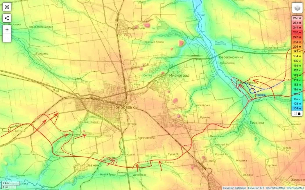 Согласно поступающей информации, противник сохраняет позиции в восточной части населённого пункта, что пока не позволяет начинать полноценную борьбу за терриконы - ключевое препятствие для штурма Покровска с юга.