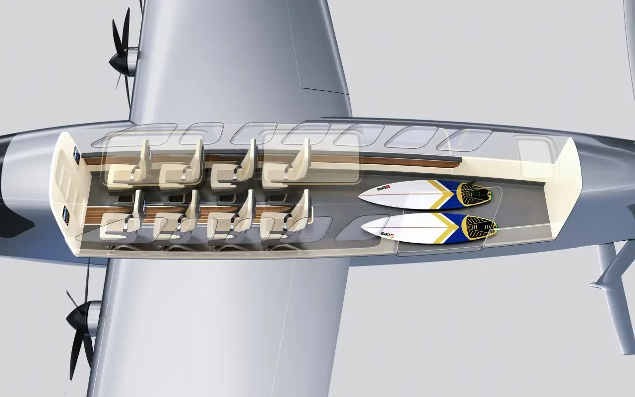 Экраноплан имеет набор аккумуляторных батарей большой ёмкости, но их тип и параметры пока не разглашаются. Полёт осуществляется за счёт 12 электромоторов, размещённых на передней кромке крыла. Такая компоновка силовой установки улучшает обдув плоскости и повышает эффективность рулевых поверхностей. Кроме того, электромоторы значительно тише иных силовых установок.