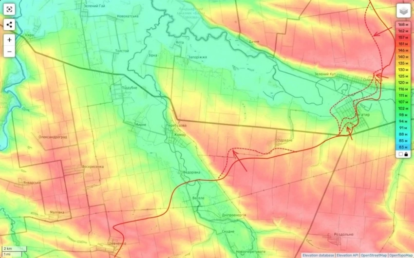 По его информации, в соседней Алексеевке продолжаются ожесточённые бои. Российские войска развивают наступление в сторону села Отрадное и продвигаются к населенному пункту Комар.