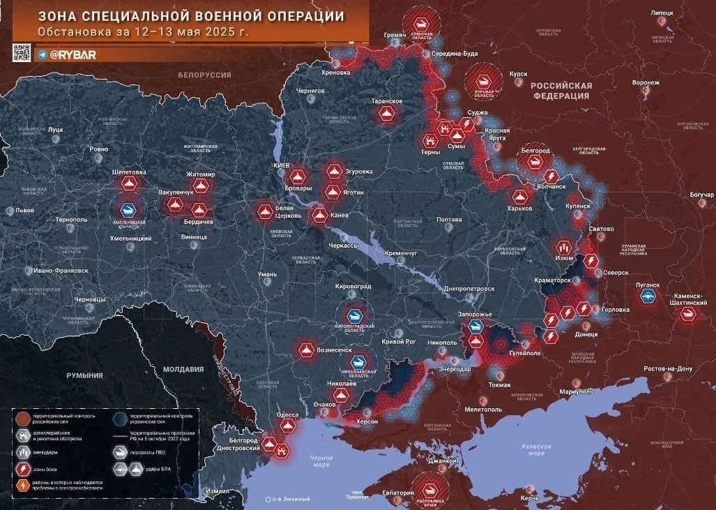 Новая карта боевых действий в зоне СВО на Украине на 14 мая 2025