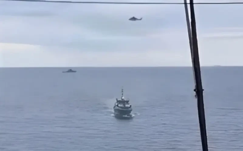 Вот так. Встречают вертолётами. Требуют бросить якорь.