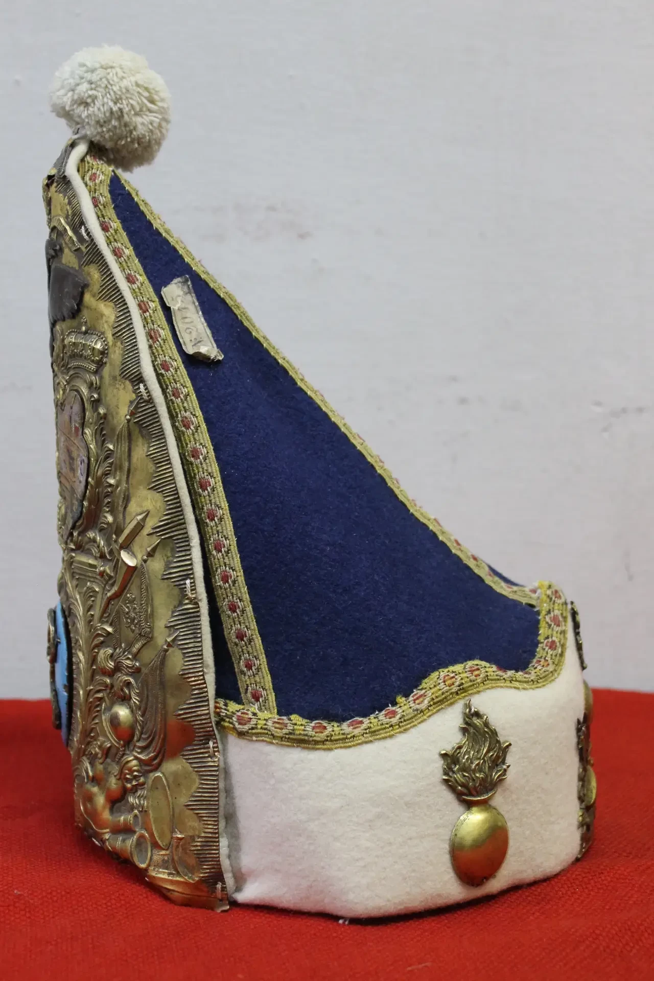 Митра-гренадерка голштинской гвардии Петра III до восшествия на российский престол. Судя по оформлению и приборным цветам, принадлежала обер-офицеру гренадерского батальона Эссена.Наналобнике вензель, составленный из латинских букв «P» (Пётр) и «F» (Фёдорович). Пензенский областной краеведческий музей. Фотография автора