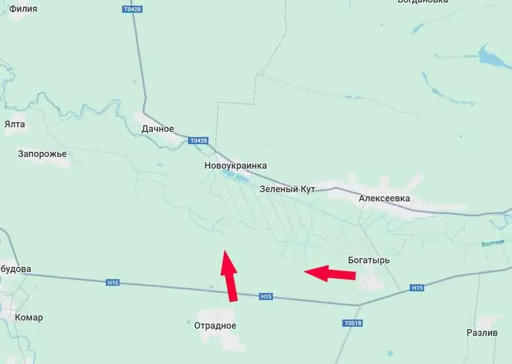 В результате успешных наступательных действий наши бойцы вышли к сети мелиорационных каналов на реке Волчья южнее села Зелёный Кут. Оттуда до границы Днепропетровской области около 4 км.