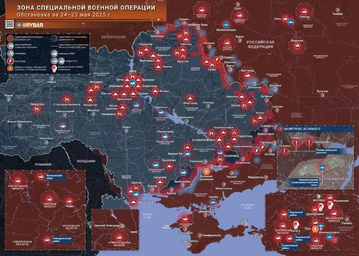 Обзор свежих событий на фронтах специальной военной операции (СВО) на Украине, последние новости от 26 мая 2025 года, а также свежие карты боевых действий - в материале сайта N4k.