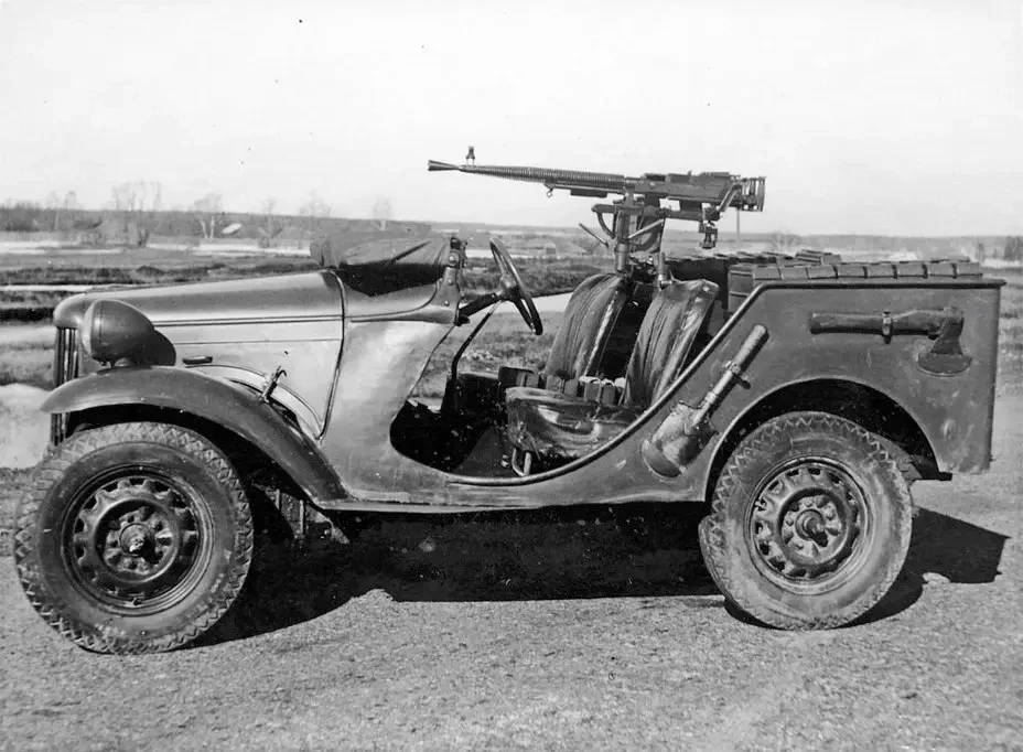 И ГАЗ-64 (заводской индекс ГАЗ-64-416) по своему основному назначению разрабатывался вовсе не как «командирский», а как разведывательно-дозорный. Затем военные «навесили» на него дополнительные задачи: доставка донесений от штабов к подразделениям (связь), а также использование в качестве тягача для легких пушек (чтобы понять нелепость данного требования, представьте себе впряженный в передок орудия мотоцикл с коляской). И потребовали увеличить пассажировместимость до 4 чел., позволив отказаться от стационарного пулемета.