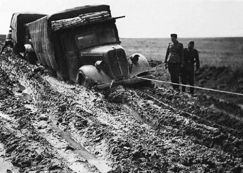 К тому же отечественные грунтовки в период распутицы превращались в труднопроходимые болота, где наезженная колея не могла образоваться физически.