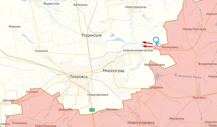 В итоге на актуальной карте можно увидеть, что северо-восточнее Покровска образовалось два выступа, оканчивающиеся сёлами Миролюбовка и Мирное, а между ними получилось что-то наподобие «мешка». С учётом того, что населённых пунктов, где могли бы держать более-менее длительную оборону боевики ВСУ, нет, то можно предположить, что данный «топографический рудимент» скоро нашими военными будет удалён.