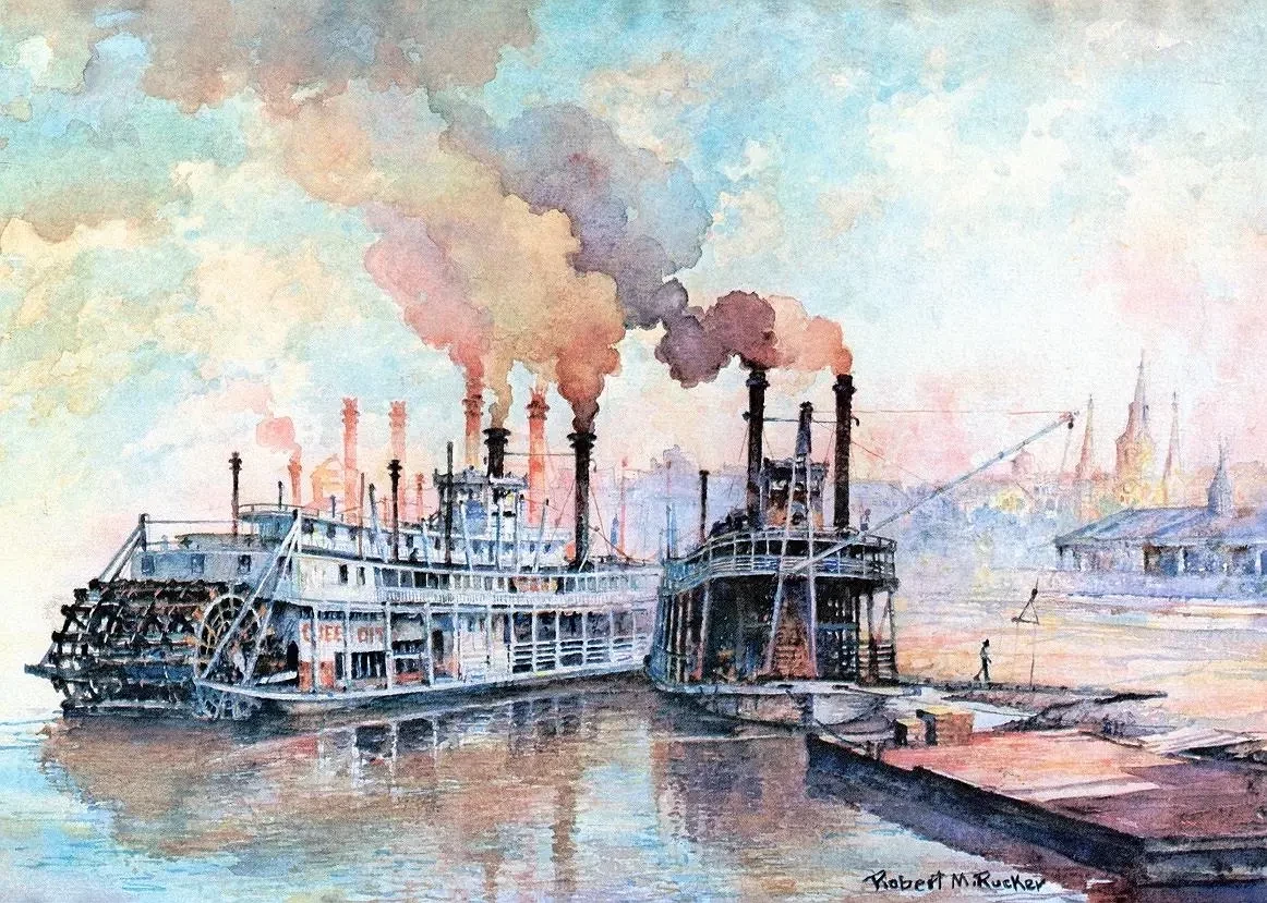 До 1810-х годов единственным доступным видом речного транспорта были плоскодонные и килевые лодки, которые в среднем проходили до двадцати миль в день. «Речные рабочие» на этих лодках путешествовали сотни или тысячи миль в зависимости от места назначения, а по прибытии распределяли товары, продавали плоскодонные лодки на пиломатериалы и возвращались домой… пешком. Путешествие некоторых речных рабочих домой продолжалось, таким образом, до четырех месяцев. Однако теперь все изменилось…
