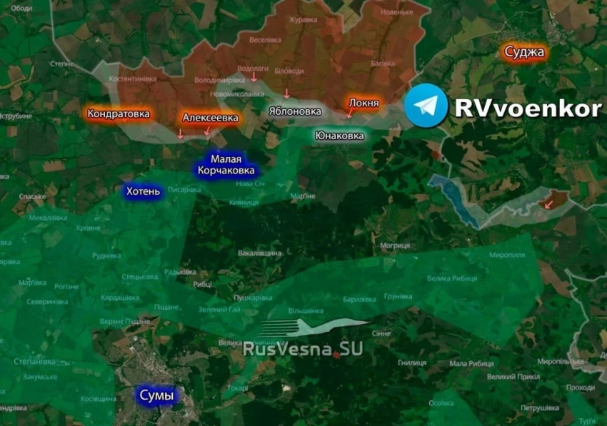 Враг отмечает, что следующими целями России на этом участке будут Хотень и Малая Корчаковка.