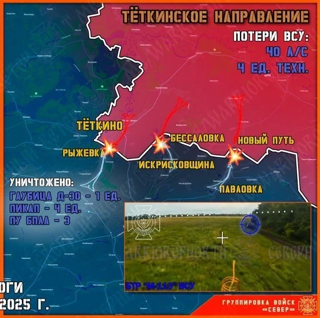 Вооружённые силы Украины (ВСУ) накануне попытались в очередной раз прорваться вглубь территории России на Тёткинском и Глушковском направлениях. Враг продолжает отправлять на убой свои штурмовые группы, которые уничтожаются Северянами в районе госграницы и на украинской территории.
