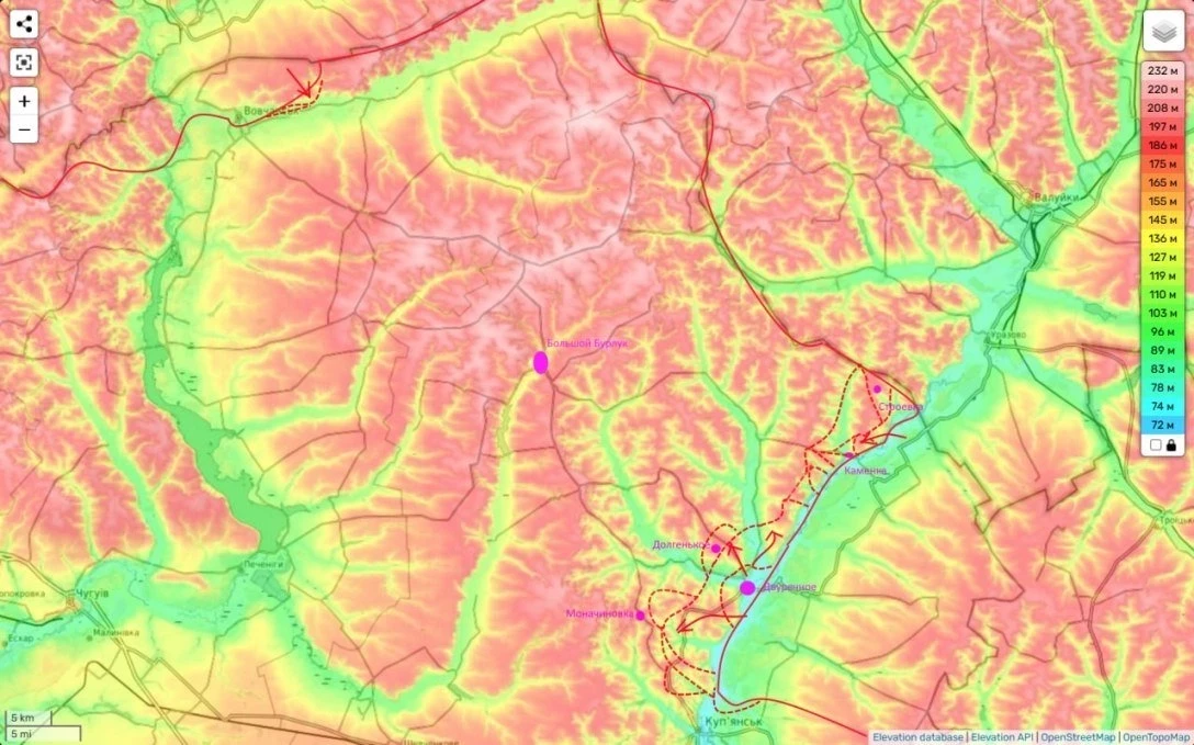 Накануне нами было взято под контроль село Долгенькое. Очевидно, что общее направление нашего здесь наступления Редкодуб (в тыл группировке ВСУ в районе Волчанска).