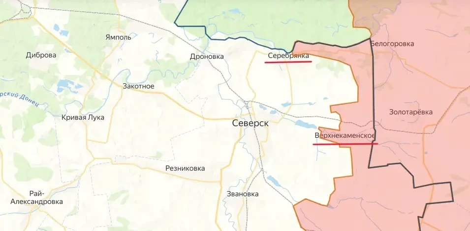 Южнее, на Северском направлении, наши подразделения продолжают бои за Верхнекаменское. Также горячо сейчас в районе Серебрянки. Идет продвижение российских войск в направлении Федоровки.