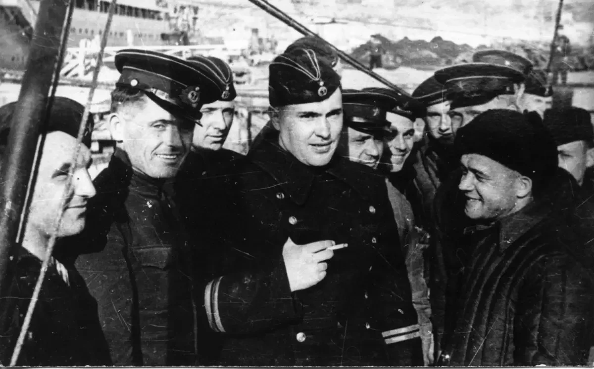 Экипаж Щ-213. В центре командир Д.М. Денежко