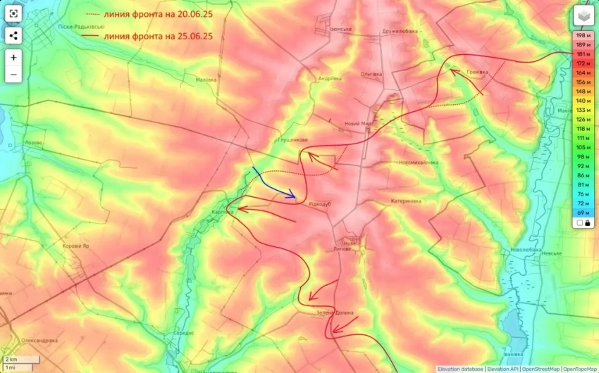 Вместе с этим на Северском участке фронта российские части заметно активизировались. В настоящее время ведутся боевые действия от Григоровки до Дронского, куда российские войска ранее уже пытались зайти. Сейчас движение возобновилось, и подразделения пытаются продвигаться по хребту в район Александровки.