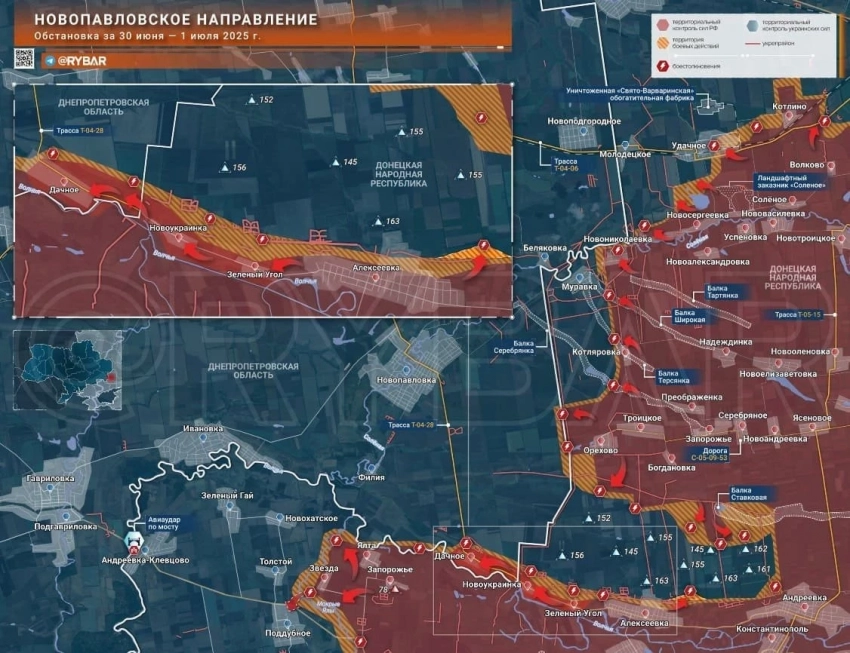 Кроме того, с территории населенного пункта Шевченко российские подразделения прорвали оборону и вышли в Воскресенку, начав там штурм. Этот населенный пункт расположен на границе Донецкой Народной Республики и Днепропетровской области.