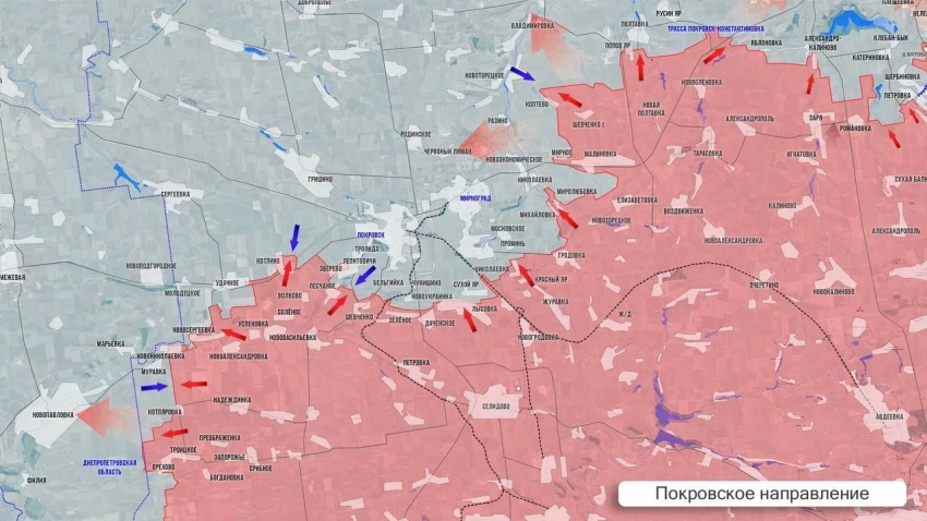 На Покровском направлении после освобождения Дачного ВС РФ на 4 км продвинулись к Новопавловке, намечается продвижение в сторону Филии. Ожесточённые бои западнее Котляровки и Орехово. В Муравке ожесточённые бои в восточной части села. К северу от Новосергеевки позиционные бои. На восточном фланге бои в Разино и на подступах к Фёдоровке.