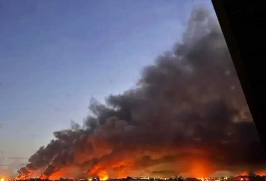 Появляются кадры утренних пейзажей украинской столицы с характерным атрибутом - объятыми дымом и пламенем военными объектами и объектами военно-промышленного комплекса.