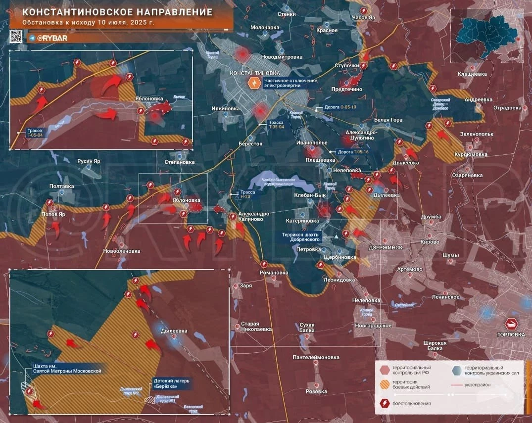 На Константиновском направлении мы давим в районе Щербиновки и Леонидовки, продолжаем биться дальше Дылеевки. В Часов Яре тоже продолжаются бои в городе. Гарнизон ВСУ в Константиновке, по разным данным, может составлять от 8 до 15 тысяч человек. Плюс сосредоточенные запасы для длительного боя, расположенные в большой промзоне города. Впрочем, это не мешает ВС РФ потихоньку брать населённый пункт в клещи, чтобы позже, возможно, организовать очередной классический котёл. Кстати, именно на этом участке фронта сегодня сражался «танк-монстр», можно сказать идейное продолжение «Царь-мангала». И идея оказалась рабочей - «монстр» обездвижился на мине и выдержал шестьдесят! ударов дронами.