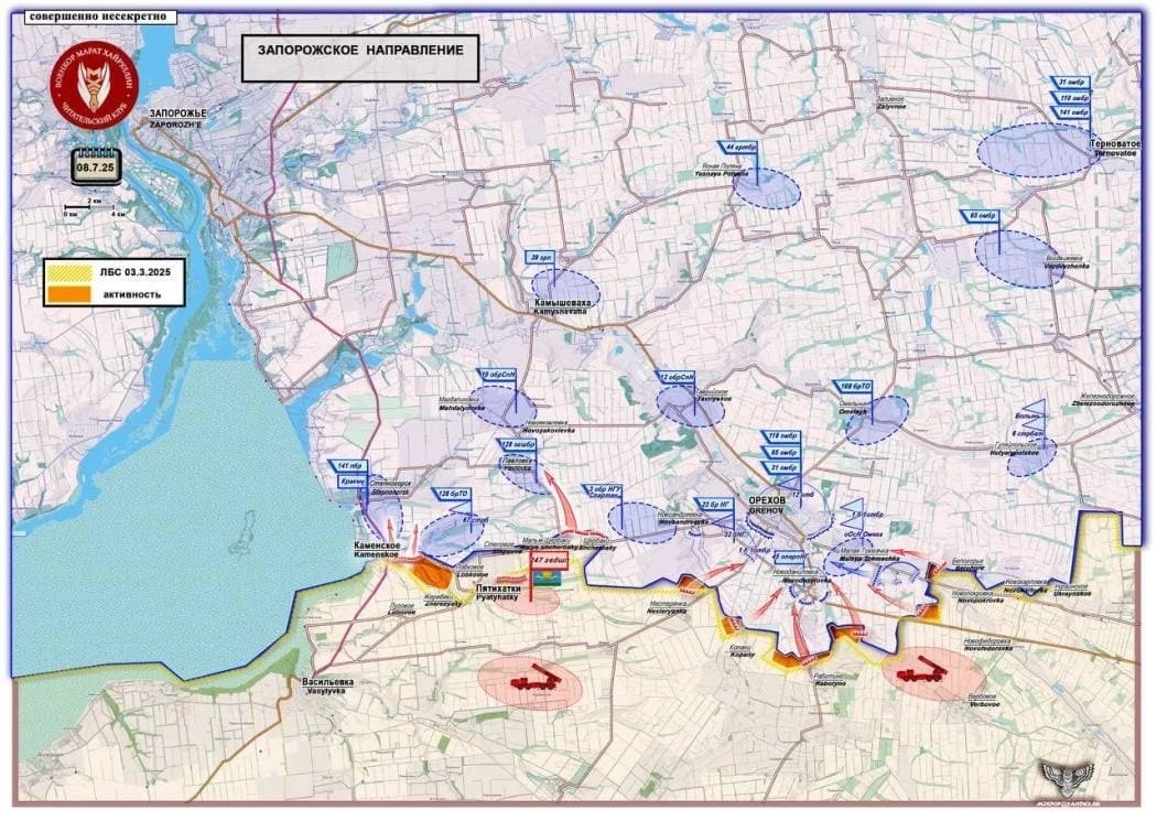 На Запорожском фронте завершается зачистка Каменского. Противник старается контратаковать, задействует в том числе дроны и артиллерию.