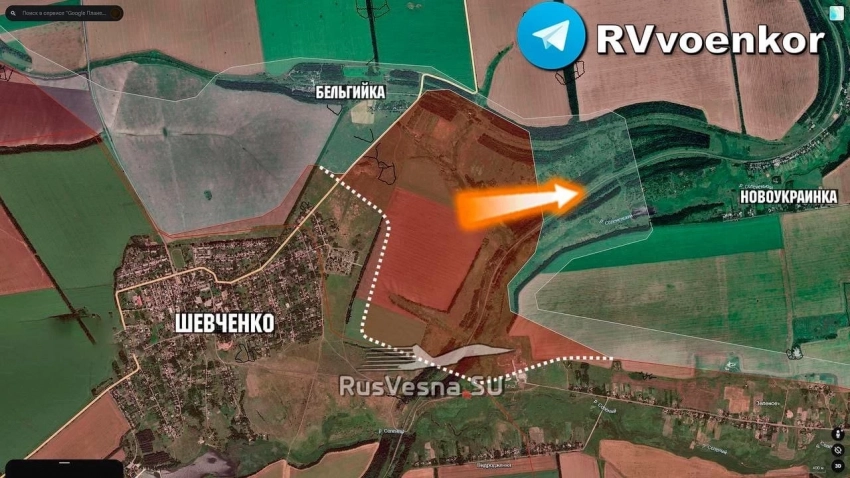 На Харьковском участке, на западе от Волчанска, российские подразделения переправились через Северный Донец в районе Огурцово и расширили зону контроля примерно на 2,5 км.