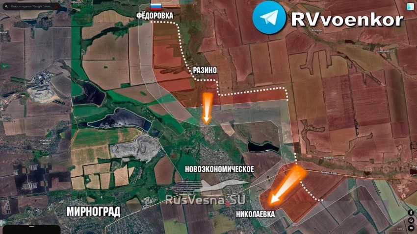 На западном фланге Покровского направления ВСУ потеснили наших бойцов на юго-западе от Удачного. С восточного участка Минобороны объявило об освобождении Николаевки. На западном ВС РФ штурмуют Новоторецкое и Фёдоровку и развивают наступление на Родинское. Контроль над последним перережет одну из трасс снабжения группировки ВСУ в Покровске и Мирнограде.