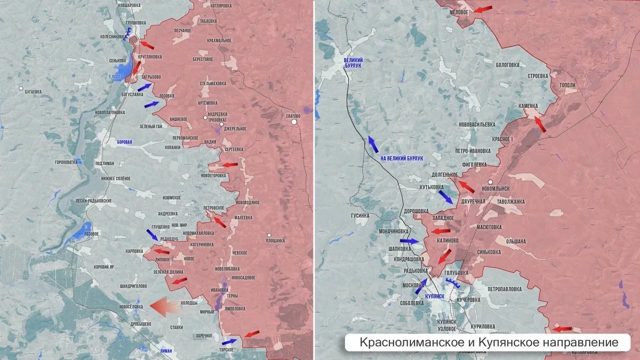 На Краснолиманском направлении ВС РФ расширяют контроль, опираясь на Зелёную Долину. Продолжаются бои в районе Глущенково-Шандриголово-Новосёловка. На отдельных участках наши пробились к первым позициям обороны противника у Оскольского водохранилища.