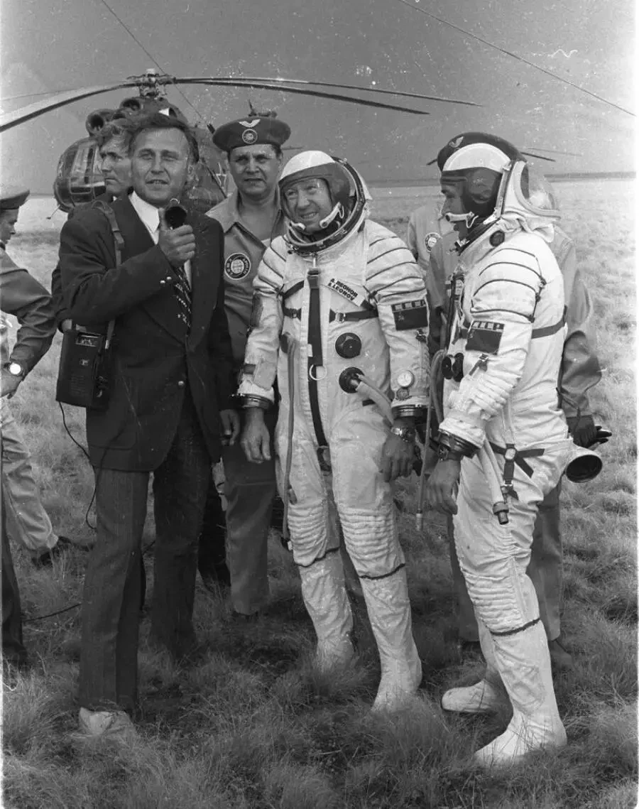 Через три часа после стыковки, смешав атмосферы и выровняв давление, представители двух крупнейших космических держав – Алексей Леонов и Томас Стаффорд – впервые в истории человечества пожали друг другу руки на орбите.