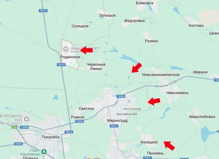 С Покровского направления поступают сообщения о боях в районе шахты Родинская. Стратегическими объектами в этом районе является 60-метровые терриконы, владение которыми пока даёт Вооружённым силам Украины «высотное преимущество» и позволяет прикрывать дорогу в сторону Доброполья. Это последняя для ВСУ автомобильная дорога Т0515, которая связывает Покровско-Мирноградскую и Славянско-Крматорскую агломерации.