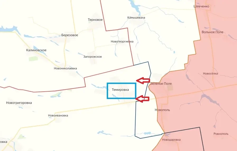 На правом фланге Запорожского направления наши войска выбили противника из опорных пунктов восточнее населенного пункта Темировка и начали бои за село, войдя с востока в Запорожскую область. На расстоянии чуть более одного километра к северу от Темировки проходит южная граница Днепропетровской области.