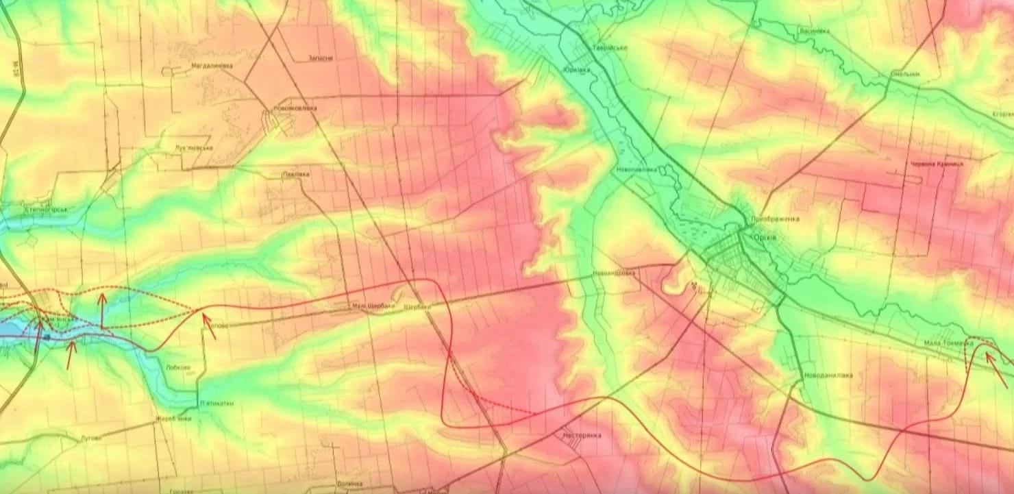 Вместе с этим Юрий Подоляка рассказал о той ситуации, которая в настоящее время складывается на Запорожском направлении, а именно на Ореховском участке фронта. Здесь российские части не только заняли лесопосадки севернее Каменского, но и местами вышли на окраины следующего крупного населённого пункта Степногорска.