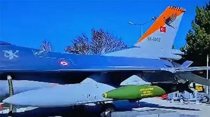 Турецкие СМИ сообщают об испытаниях бомбы Mk84 Gazap («Гнев») с термобарическим зарядом, сброшенной с борта истребителя F-16. Соответствующее видео показано в сети.