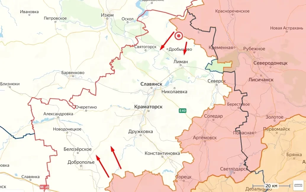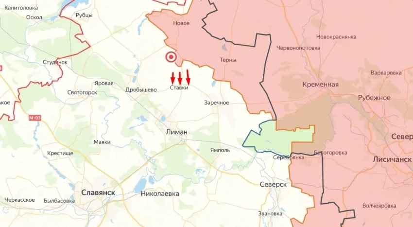 Поступают сведения, что наши бойцы подходят к селу Ставки, которое находится севернее Красного Лимана. При этом сам населённый пункт расположен в 4-х км от города. Таким образом, можно сказать, что штурмовые подразделения ВС РФ уже буквально «нависают» над ним.